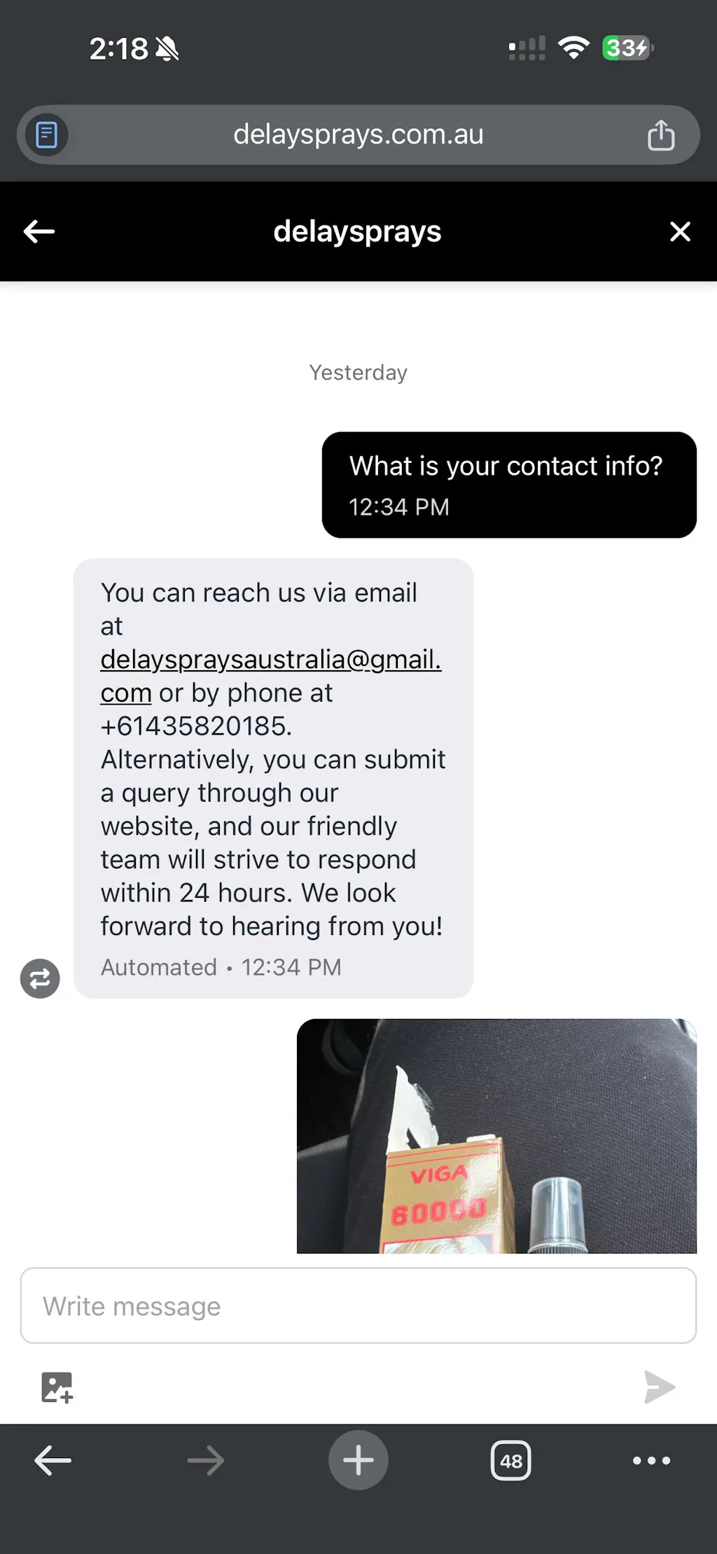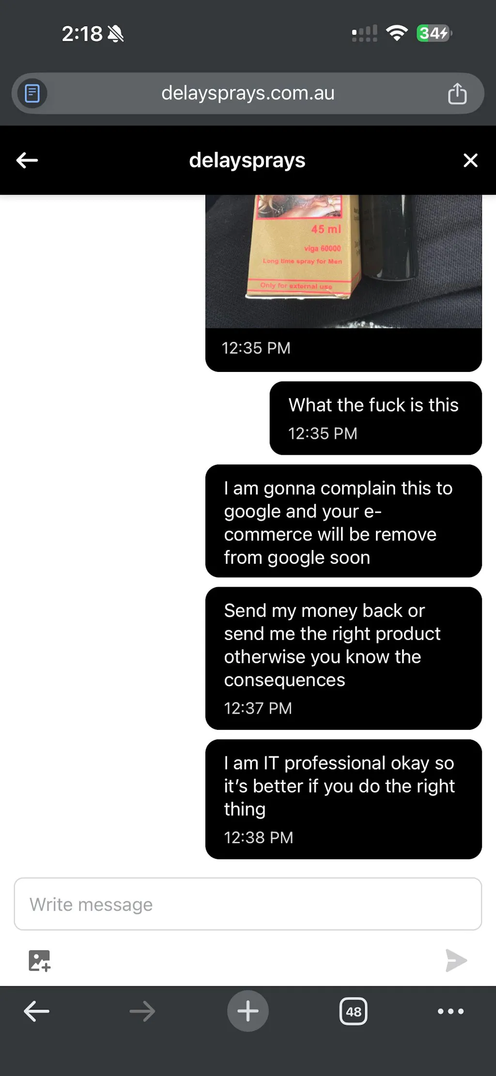 I buy one delay spray from them and they send me wrong product and I am calling them and also send email and everything but they just take my money they are fucking scammers and here I am also attaching the picture of product. They are fucking scammers don’t buy anything from them.